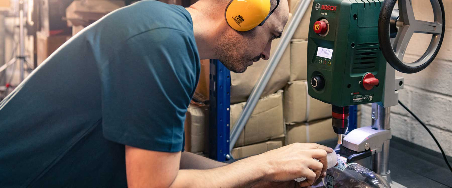 In this relaxed, hands-on workshop, you’ll transform an empty whiskey, gin, or wine bottle into a fully working, beautifully finished lamp. You’ll be guided step-by-step through drilling, wiring, and assembling your lamp, and you’ll get to customise it with your choice of cable, fittings, and bulb.